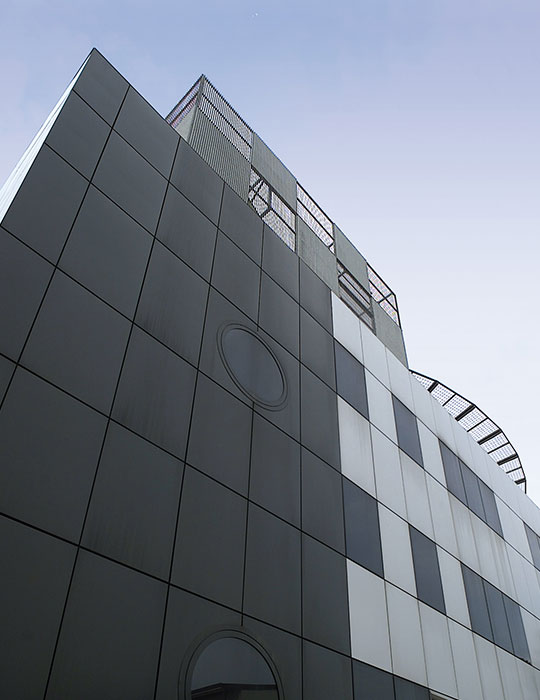 esternamente con moderni pannelli in alluminio nelle tonalità nero e