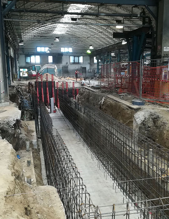 Le fosse interrate ad uso nuovo impianto di fonderia sono state costruite interamente in calcestruzzo in opera.