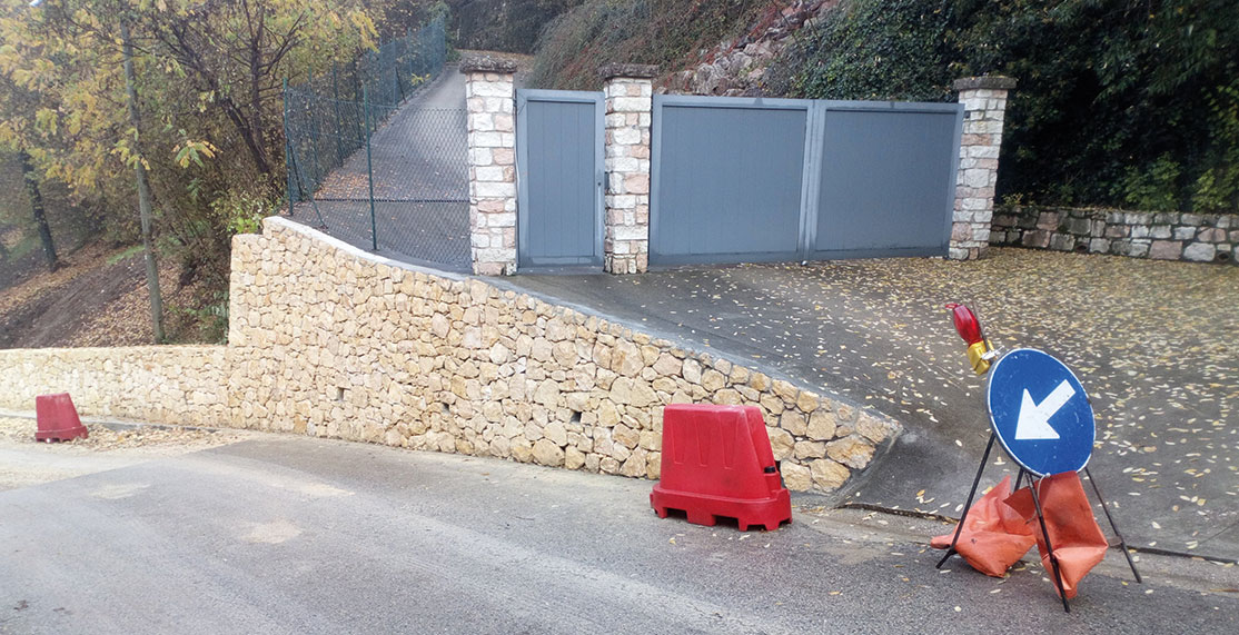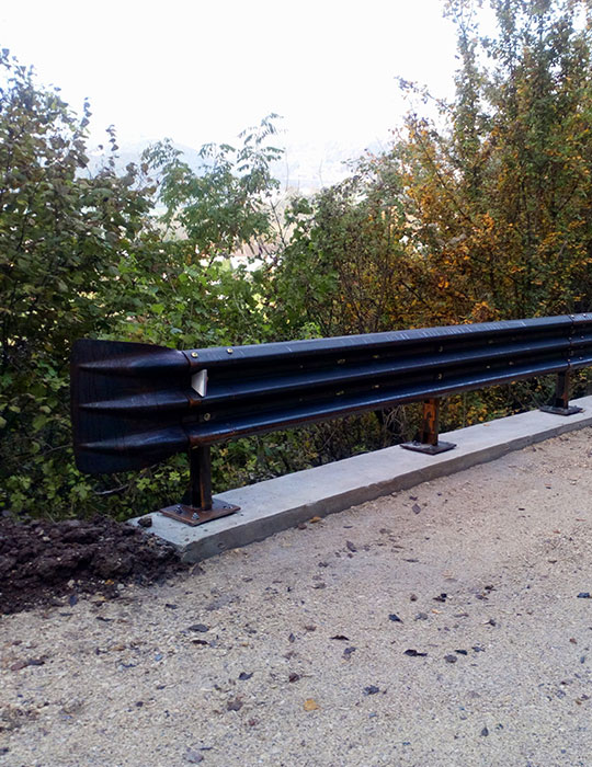 Predisposizione di un fondo stradale nuovo e successiva asfaltatura. Sul lato a monte è stata installata una barriera stradale in acciaio corten, assicurando sia una funzione protettiva che un’integrazione estetica con il contesto paesaggistico.